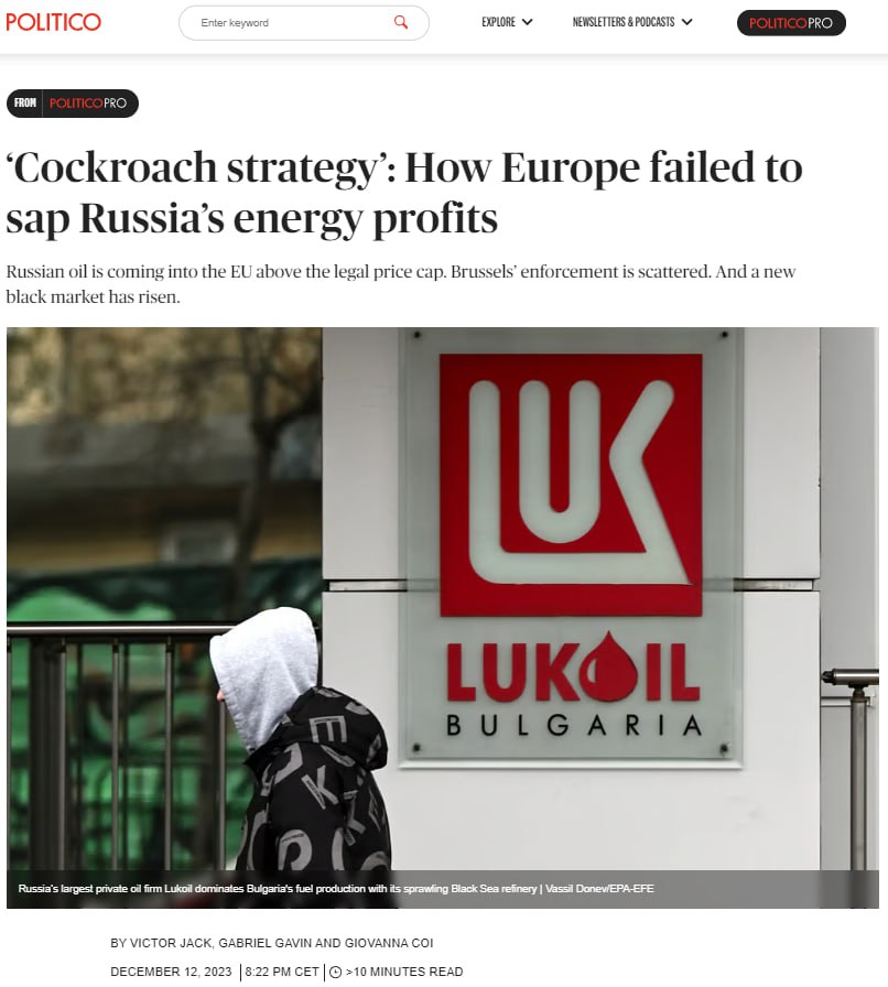 Politico: «Стратегия тараканов»: как Европе не удалось лишить Россию энергетических прибылей