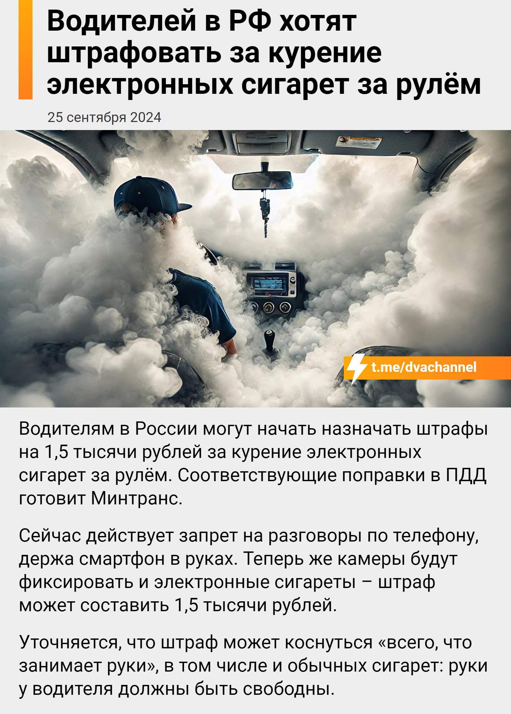 Водителей в РФ хотят штрафовать за курение электронных сигарет за рулём