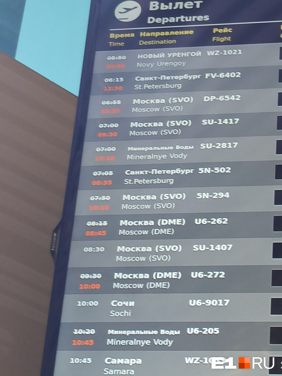 Судя по онлайн-табло, на вылет задерживают минимум семь рейсов. Пассажиры рейсов, летевшие из Иркутска и Барнаула, сели в Перми, а самолеты из Санкт-Петербурга и Москвы направили в Челябинск.
