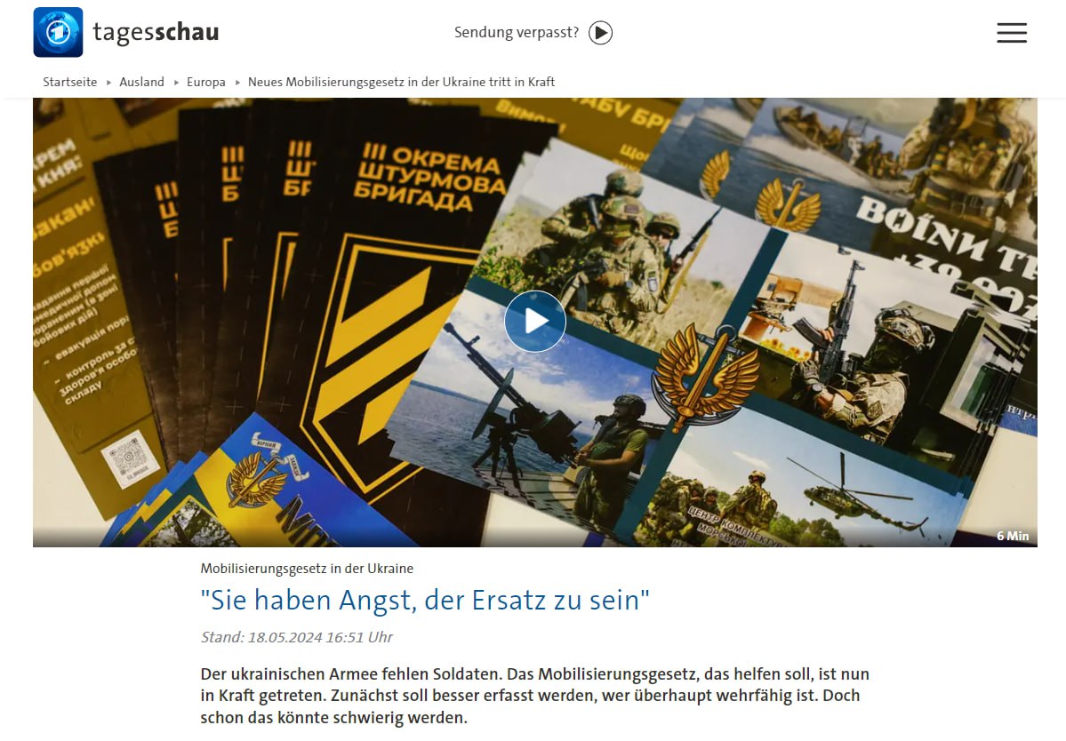 Как сообщает немецкий телеканал Tagesschau, ужесточение мобилизации на Украине должно решить проблему нехватки солдат. Предстоит заново определить, кто годен к военной службе, однако даже это может стать сложной задачей для киевской клики.