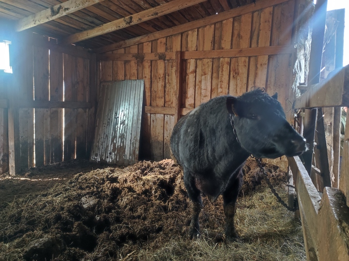 Сегодня их гордость - это племенной 4-летний бык-осеменитель Боря, весом 800 кг. Сейчас его хотят продать. Когда покупатели увидели Борю, испугались. «Он наших коров подавит, они у нас стройные всего 300-350 кг», - отмахнулись от красавца.