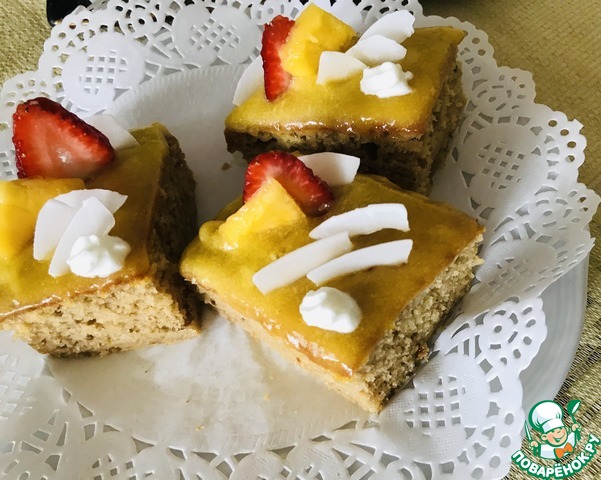 Здравствуйте Поварята.!!! Рецепт взят из журнала Cooles, на английском ". Mango hummingbird sheet cake " (Пусть меня поправят за перевод ) Рецепт очень мне понравился, я решила с вами поделиться. Очень легкий, влажный бисквит, ореховый, с манго -ароматный и пикантный вкус. Украсить можно по своему желанию. Может кому пригодится на новогодний стол. Попробуйте, заходите.
