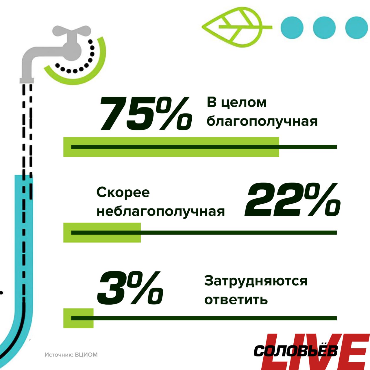 : Большинство россиян (75%) оценивают экологическую обстановку по месту жительства как благополучную.