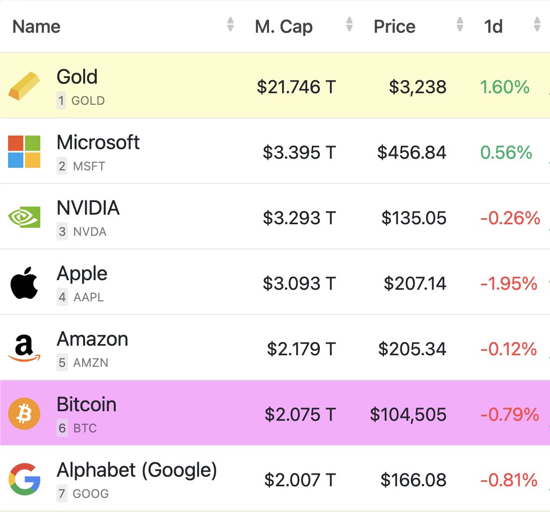 Биткоин обошёл акции Google в топе самых дорогих активов в мире.