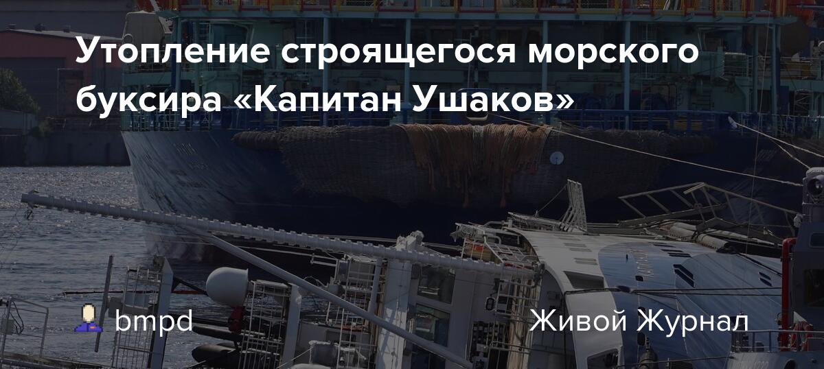 🗣️ Сообщают, что в ночь на 9 августа 2025 года в Санкт-Петербурге у стенки АО «Балтийский завод» (в составе АО «Объединенная судостроительная корпорация») в результате аварии опрокинулся на правый борт и затонул достраивающийся для ВМФ России морской буксир «Капитан Ушаков» (заводской номер 414) проекта 23470. Фактически достроечные работы на судне вело осуществившее его постройку АО «Ярославский судостроительный завод» (ЯСЗ), арендовавшее у Балтийского завода причальное место. «Капитан Ушаков» был заложен на ЯСЗ в 2017 году и спущен на воду 14 июня 2022 года, а в ноябре 2023 года он был прибуксирован по внутренним водным путям для достройки и испытаний на Балтийский завод в Санкт-Петербурге. Работы на судне значительно затянулись. Буксир должен был войти в состав Северного флота.