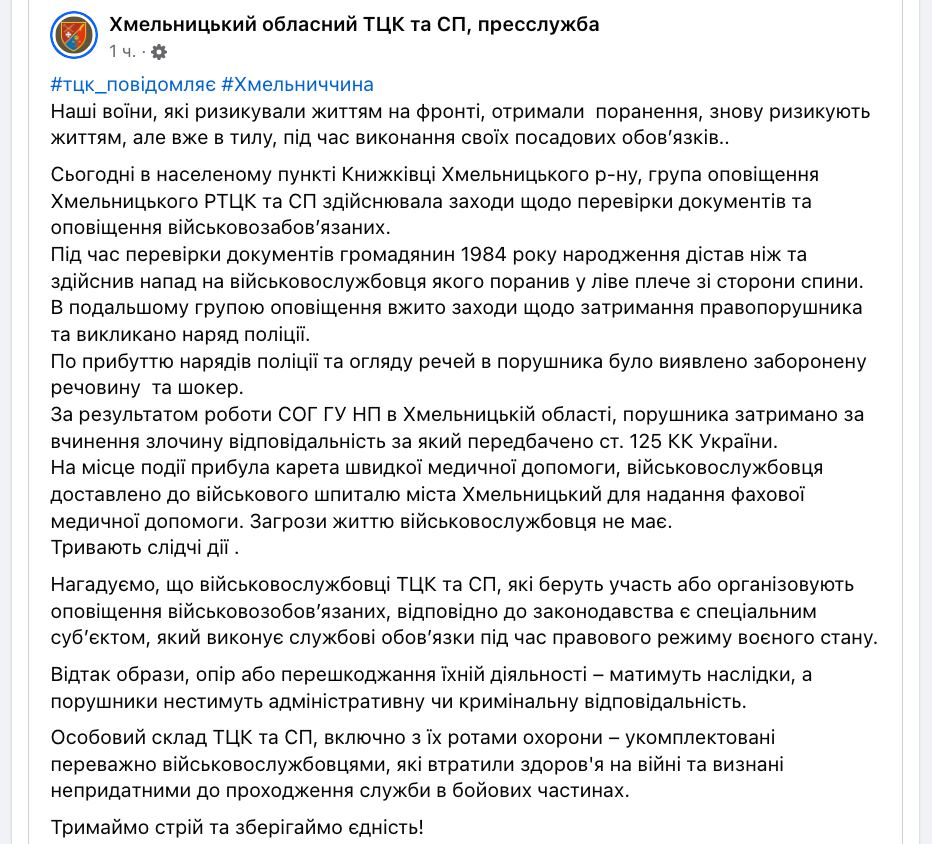 1. Сотрудник ТЦК пытался проверить документы у мужчины на территории завода «Адвис». Во время проверки возник конфликт, в ходе которого мужчина избил сотрудника ТЦК.