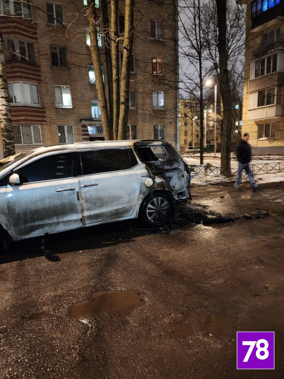 Взрыв произошёл около дома 69к1. Начался пожар, выгорел багажник и салон Kia.