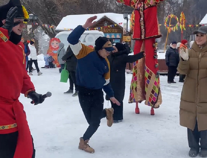 — Празднование Масленицы в самом разгаре, — сообщили в зоопарке. — У нас в гостях был актер театра и кино — Никита Кологривый и очень ярко танцевал.
