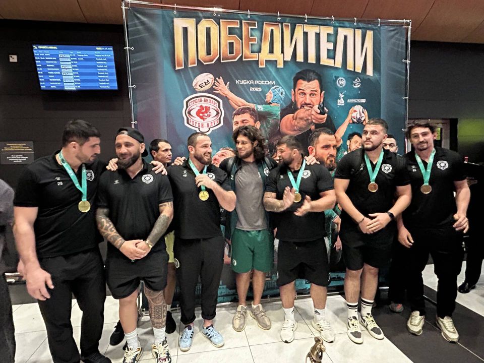 Победители Кубка России по регби 2025 года, регбисты казанской «Стрела-Ак Барс» приземлились в Казани. Чемпионов в казанском аэропорту имени Габдуллы Тукая встретили болельщики, а также женская команда и юниоры, которые занимаются регби.