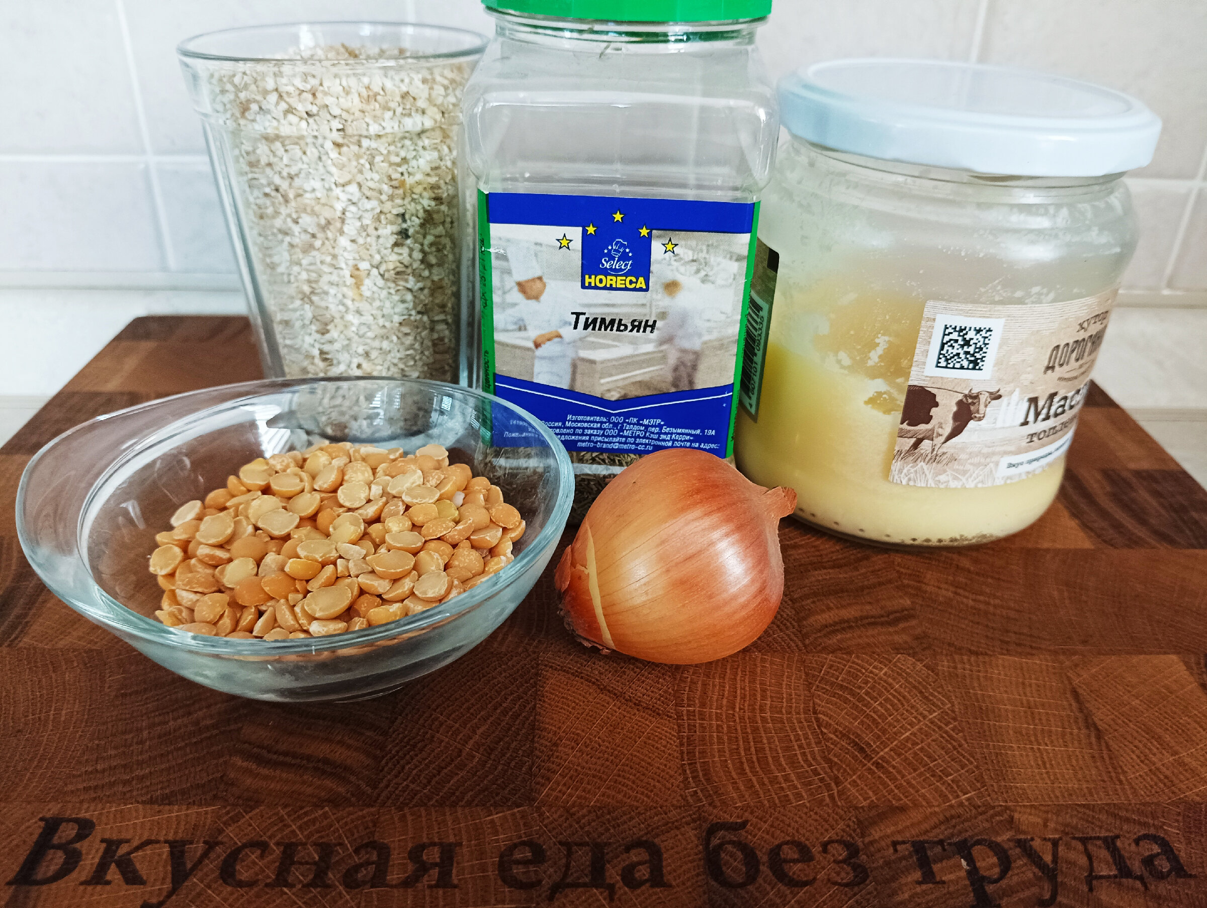 Если готовлю с цельным, а не колотым горохом, то его промываю и замачиваю хотя бы на 4 часа. Колотый лущёный горох просто промываю. Горох варю в 1 стакане воды без соли минут 40 до частичного или полного разваривания.