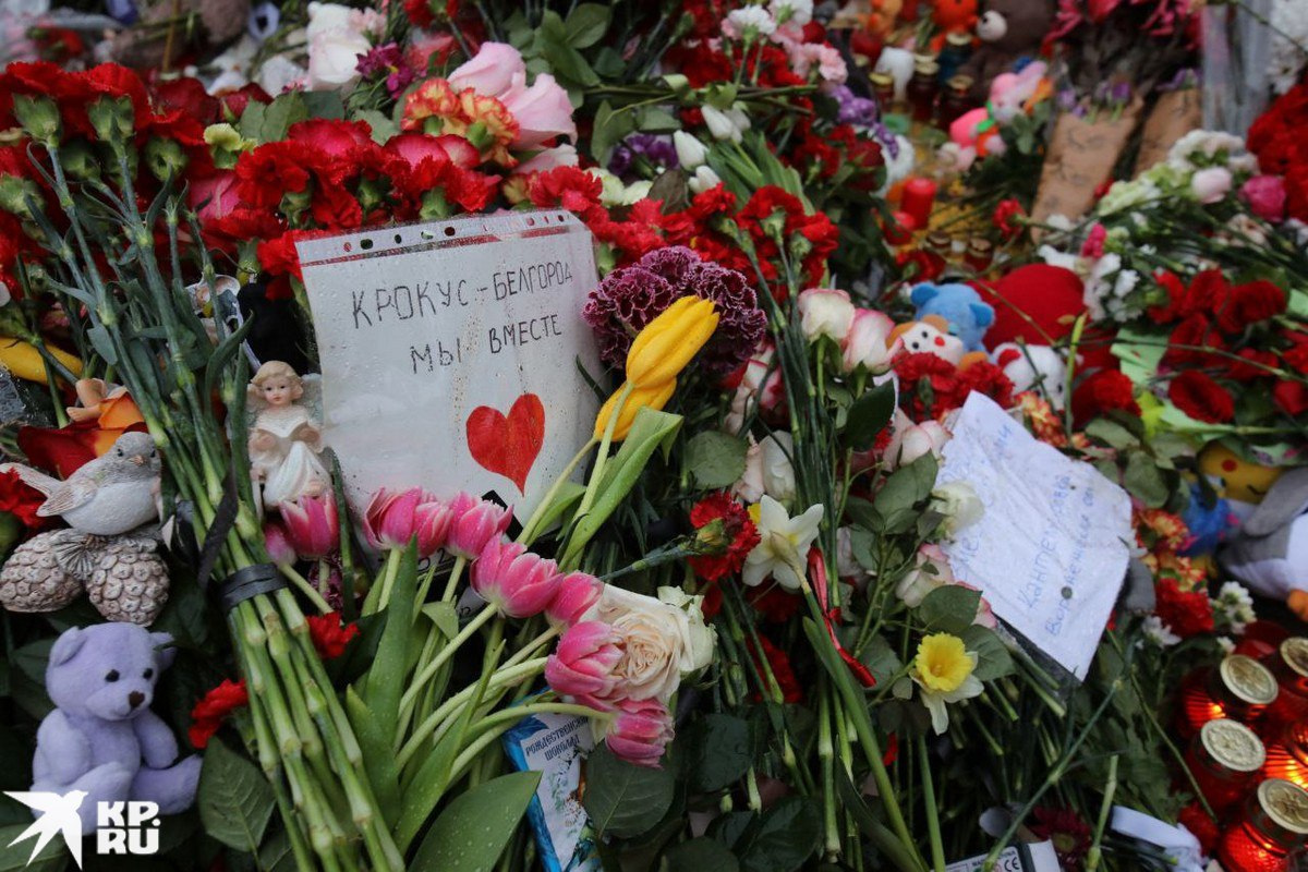 Люди пришли к «Крокус Сити Холлу», чтобы почтить память погибших. Фоторепортаж
