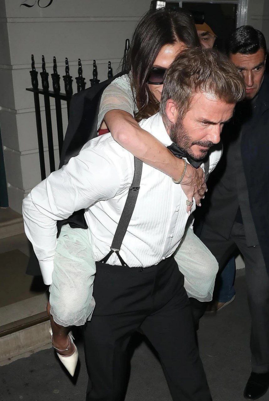 Не можем налюбоваться на Дэвида Бекхэма, который бережно несет домой хорошо отметившую свой день рождения Викторию.