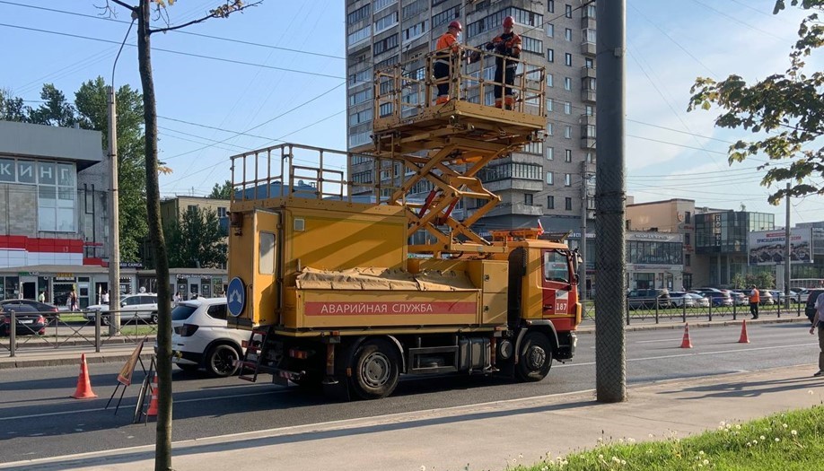 В сторону улицы Зины Портновой стоят без движения около 20 троллейбусов, передаёт с места происшествия корреспондент "Делового Петербурга".
