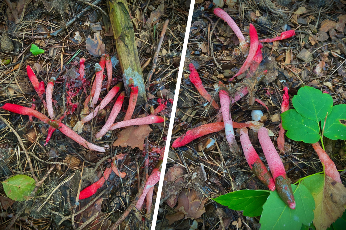 В Тюмени нашли необычные грибы. На вид они красного цвета и неприятно пахнут. Их обнаружили в экопарке «Затюменский».