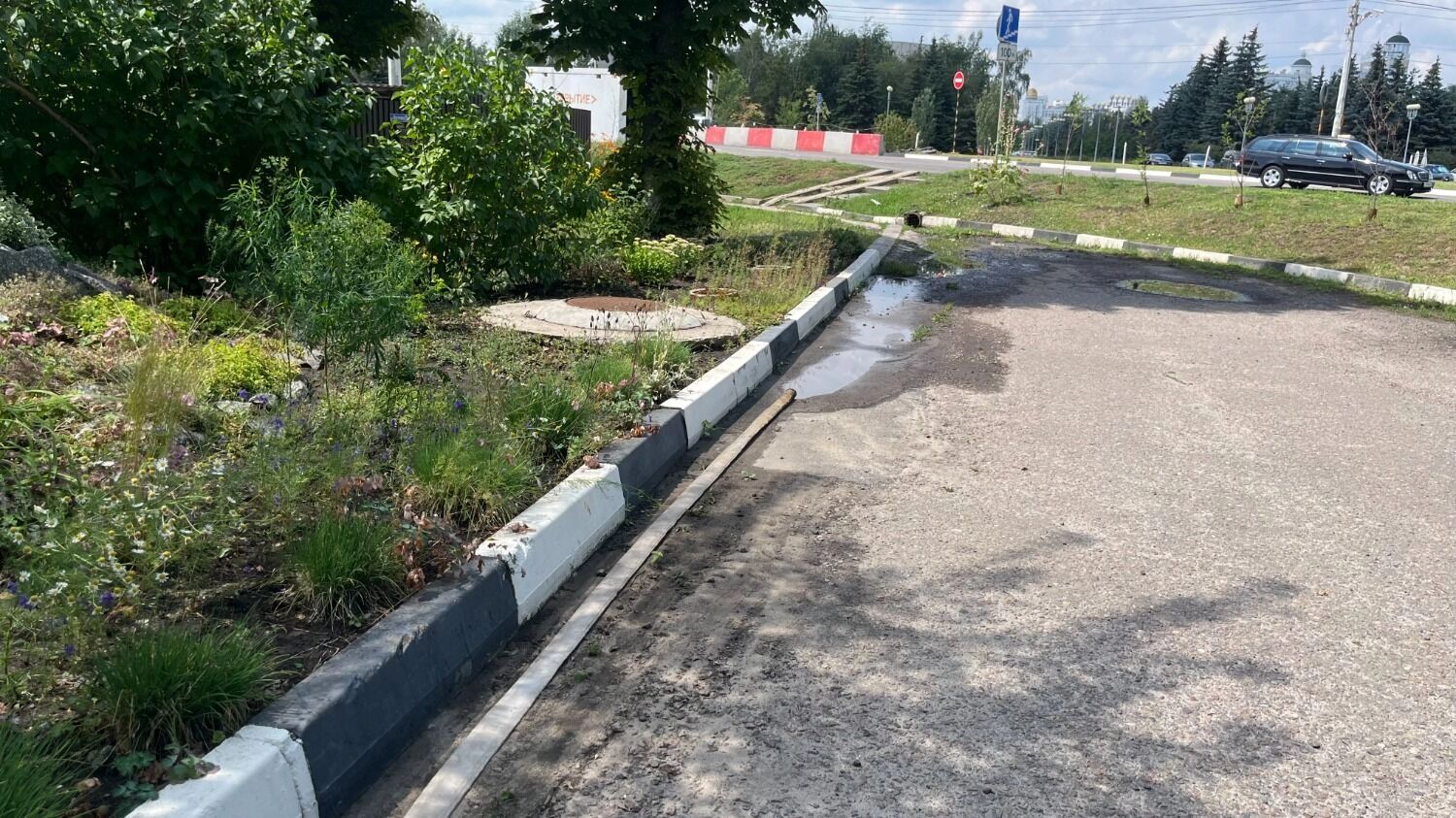 На кольце и на парковке рядом с ним лужи очень пугающие — одна из таких (а на самом деле, может, и не одна) образовалась прямо в районе ливнёвки. Она настолько забита, что вода в этом месте просто собирается из-за наклона и стоит. Ещё в нескольких лужах решётки рассмотреть не удалось, это всё-таки проезжая часть, но, может, они есть и там.