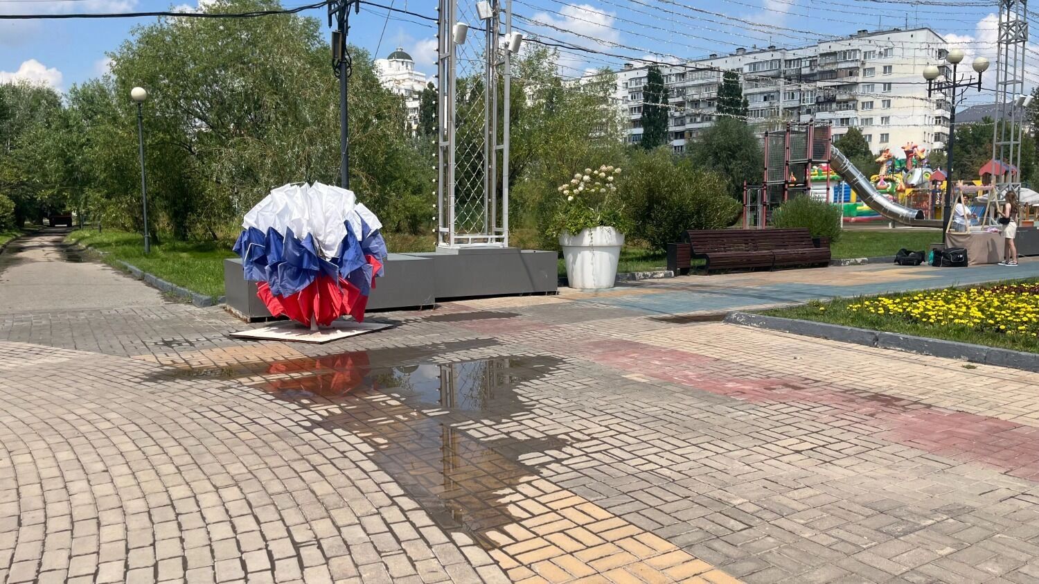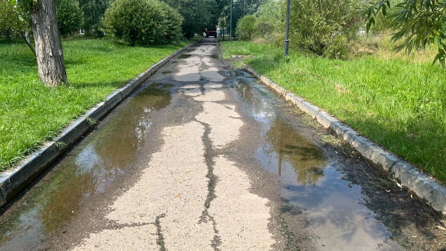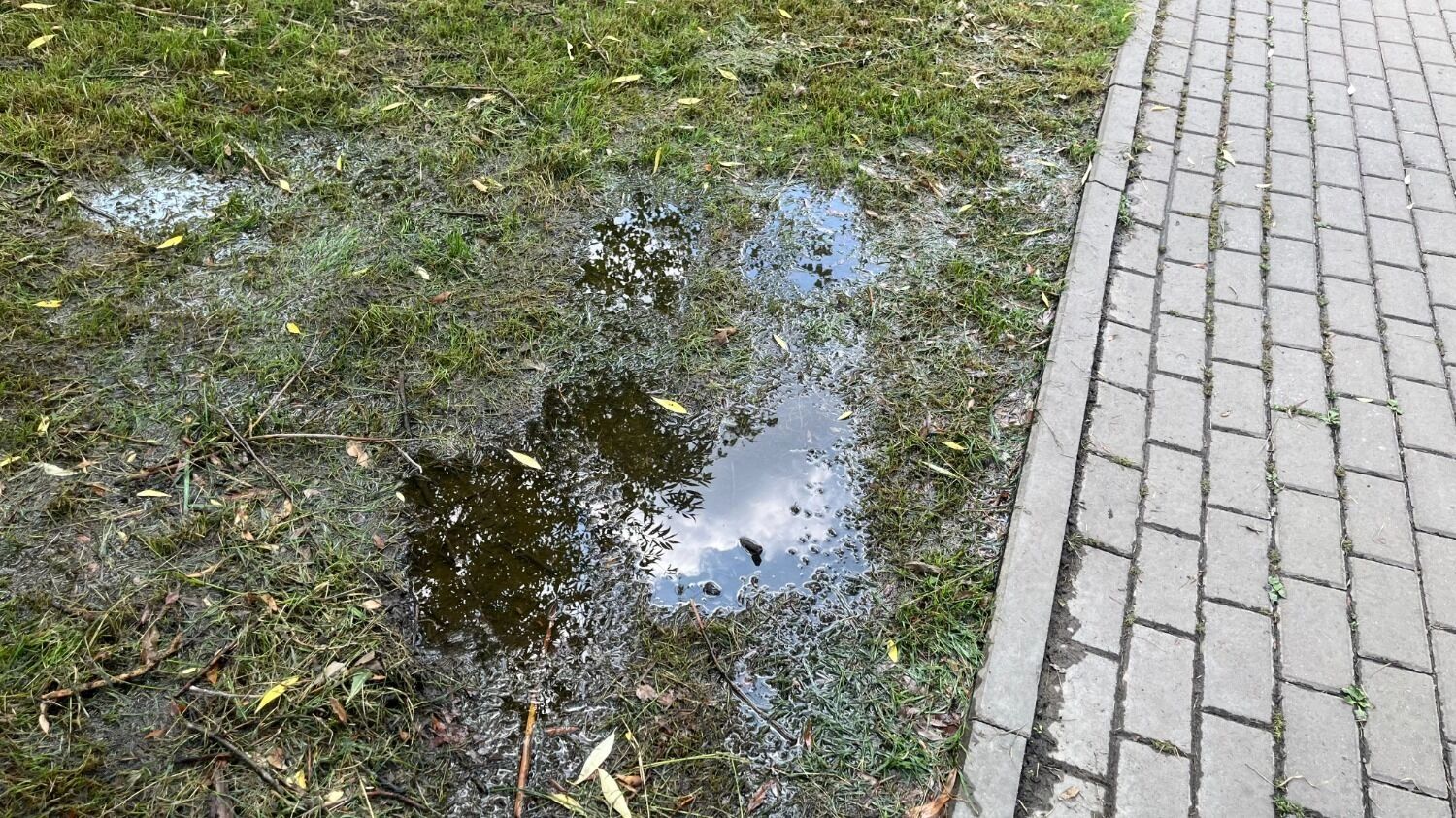 Наиболее впечатляющей оказалась дорожка от памятника Жукову к теннисному корту. Она не в плитке, как большая часть тропинок, а в асфальте, который очевидно не так хорошо справляется с пропусканием через себя воды. По этой дорожке можно встретить много мусора, который принесло водой, а ещё нечто похожее на тину. Как будто эти лужи можно не в шутку, а реально назвать болотом и существуют они уже не первый день.