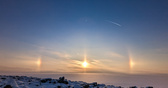 В разных районах Петербурга читатели «Фонтанки» запечатлели в среду солнечное гало. Это довольно редкое оптическое явление представляет собой светящийся круг вокруг солнца. Образуется он, когда солнечный свет преломляется в кристалликах льда в перистых облаках в верхних слоях тропосферы — на высоте в 5–10 километров. Красоту наблюдали, например, с берега южного намыва или прямо посреди города — в Красногвардейском районе.