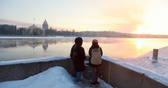 Холодной погоде вкупе с не полностью покрывшимся льдом реками петербуржцы обязаны и еще одним зрелищным явлением — парением воды. Неву словно заволокло дымом. В первой половине дня туманное облако было таким плотным, что с трудом можно было разглядеть другой берег. К вечеру осталась уже легкая дымка. Парение возникает, когда температура поверхности воды значительно выше температуры воздуха.