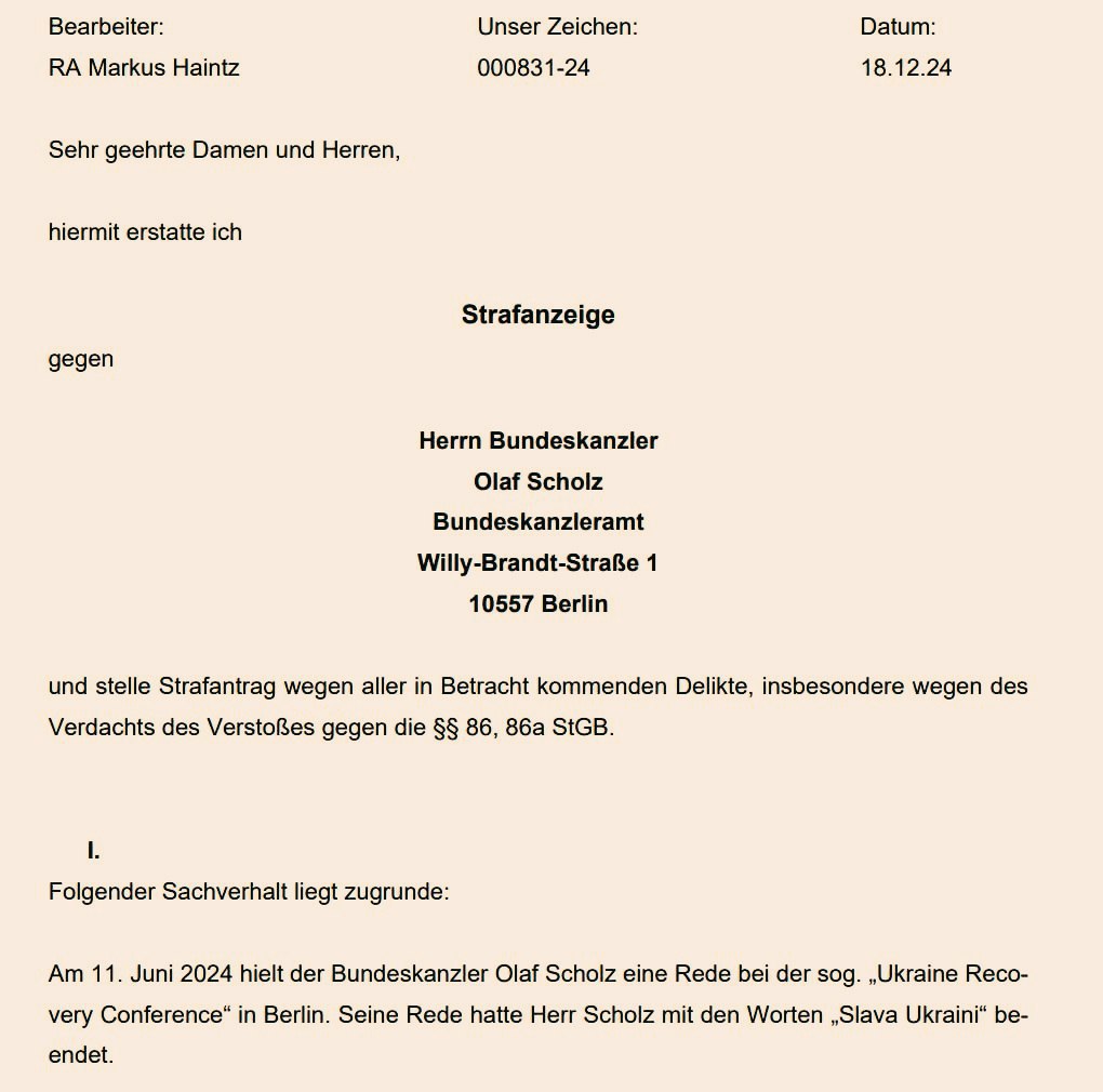 Π₯Π°ΠΉΠ½ΡΡ Π½Π°ΠΏΡΠ°Π²ΠΈΠ» ΠΆΠ°Π»ΠΎΠ±Ρ Π½Π° ΠΏΠΎΠ»ΠΈΡΠΈΠΊΠ° Π² ΠΏΡΠΎΠΊΡΡΠ°ΡΡΡΡ ΠΠ΅ΡΠ»ΠΈΠ½Π°. ΠΠ½ ΠΎΠ±Π²ΠΈΠ½ΡΠ΅Ρ Π¨ΠΎΠ»ΡΡΠ° Π² ΡΠ°ΡΠΏΡΠΎΡΡΡΠ°Π½Π΅Π½ΠΈΠΈ ΠΏΡΠΎΠΏΠ°Π³Π°Π½Π΄ΠΈΡΡΡΠΊΠΈΡ ΠΌΠ°ΡΠ΅ΡΠΈΠ°Π»ΠΎΠ² Π°Π½ΡΠΈΠΊΠΎΠ½ΡΡΠΈΡΡΡΠΈΠΎΠ½Π½ΡΡ ΠΎΡΠ³Π°Π½ΠΈΠ·Π°ΡΠΈΠΉ. ΠΠΎ ΡΡΠΎΠΉ ΡΡΠ°ΡΡΠ΅ Π£Π Π€Π Π ΠΊΠ°Π½ΡΠ»Π΅ΡΡ Π³ΡΠΎΠ·ΠΈΡ ΡΡΡΠ°Ρ ΠΈΠ»ΠΈ Π»ΠΈΡΠ΅Π½ΠΈΠ΅ ΡΠ²ΠΎΠ±ΠΎΠ΄Ρ ΡΡΠΎΠΊΠΎΠΌ Π΄ΠΎ ΡΡΠ΅Ρ Π»Π΅Ρ.
