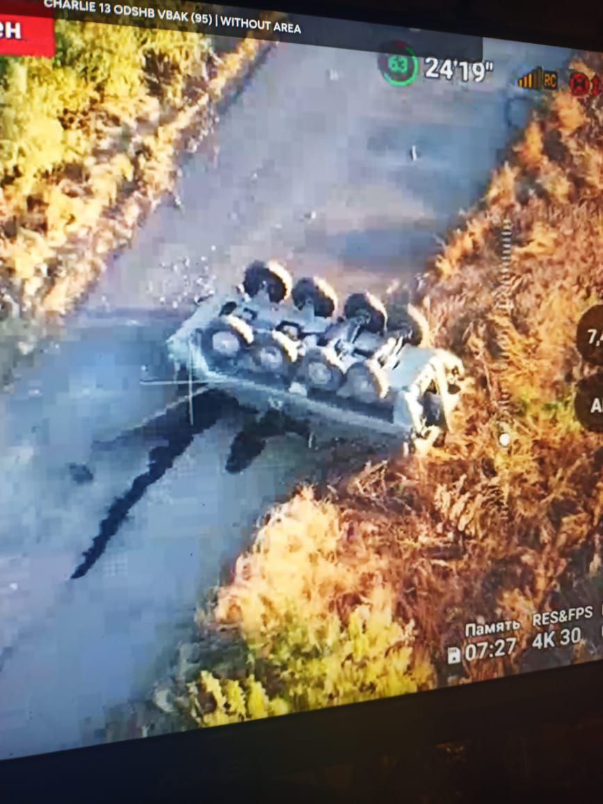 Американский БТР "Страйкер" в Курской области наелся, перевернулся на живот и спит.