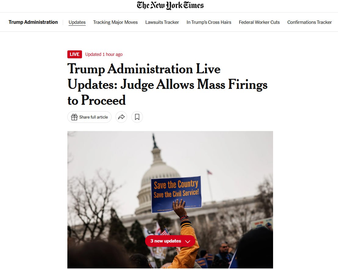 The New York Times сообщает о массовых сокращениях в федеральных агентствах США: