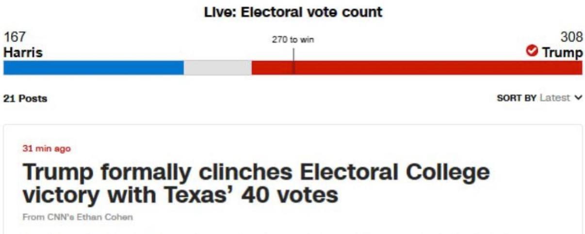 Трамп официально получил необходимое количество голосов выборщиков для победы на выборах