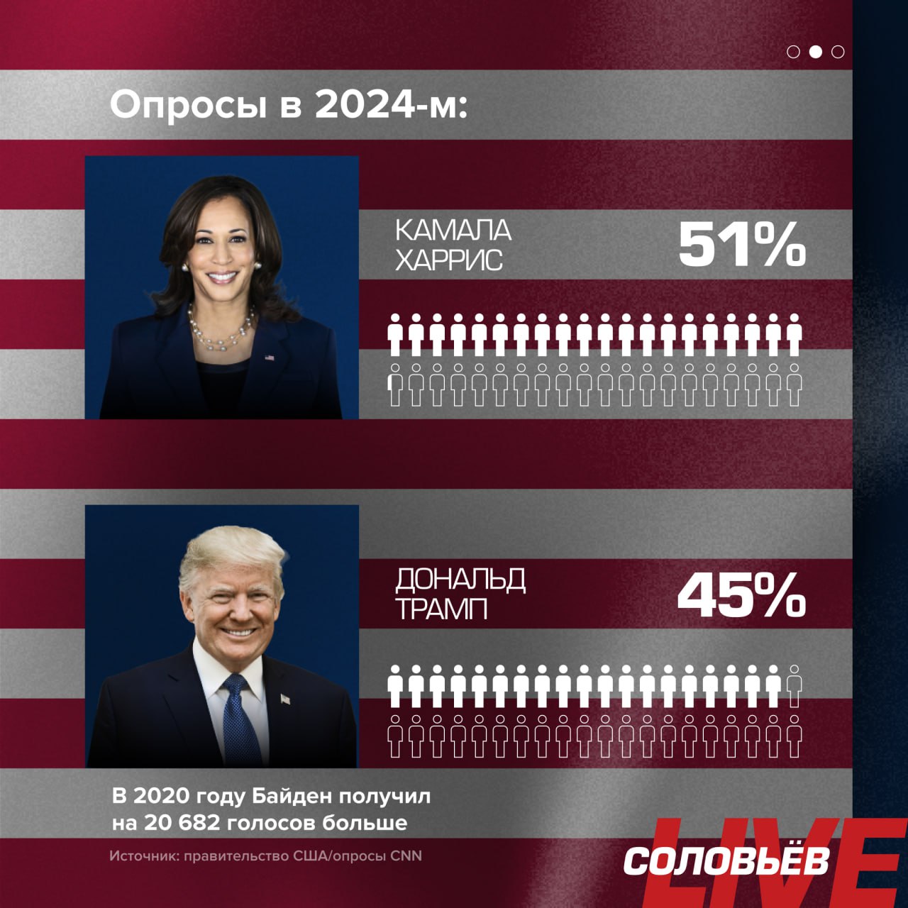 📺📺 Завтра в 22:00 смотрите в эфире специальный проект СоловьёвLIVE — ночь выборов в США с лучшими американистами, политологами и журналистами, которые расскажут всю правду о самой напряженной президентской гонке.