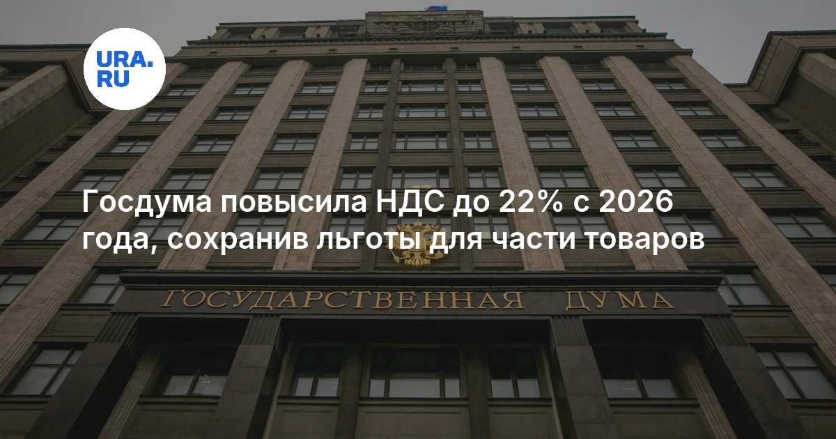 Госдума повысила НДС до 22% с 2026 года, сохранив льготы для части товаров