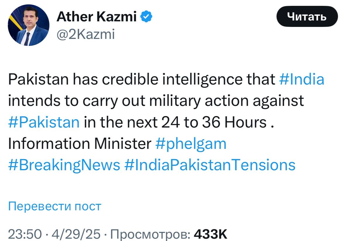 Индия планирует начать войну в течение 24-36 часов, Пакистан имеет разведданные,