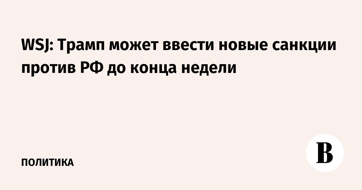 Американский лидер Дональд Трамп рассматривает возможность введения дополнительных ограничительных мер в отношении Москвы уже на текущей неделе. Как сообщает The Wall Street Journal со ссылкой на информированные источники, такое решение связано с неудовлетворенностью президента США позицией российского руководства и недостаточной динамикой мирного урегулирования.