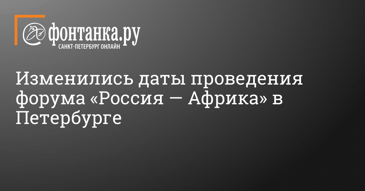 Даты проведения форума «Россия-Африка» в Петербурге изменились. Он пройдет 27 и 28 июля, а не с 26 по 29 июля, как сообщалось ранее. Информация об изменениях появилась на сайте форума.
