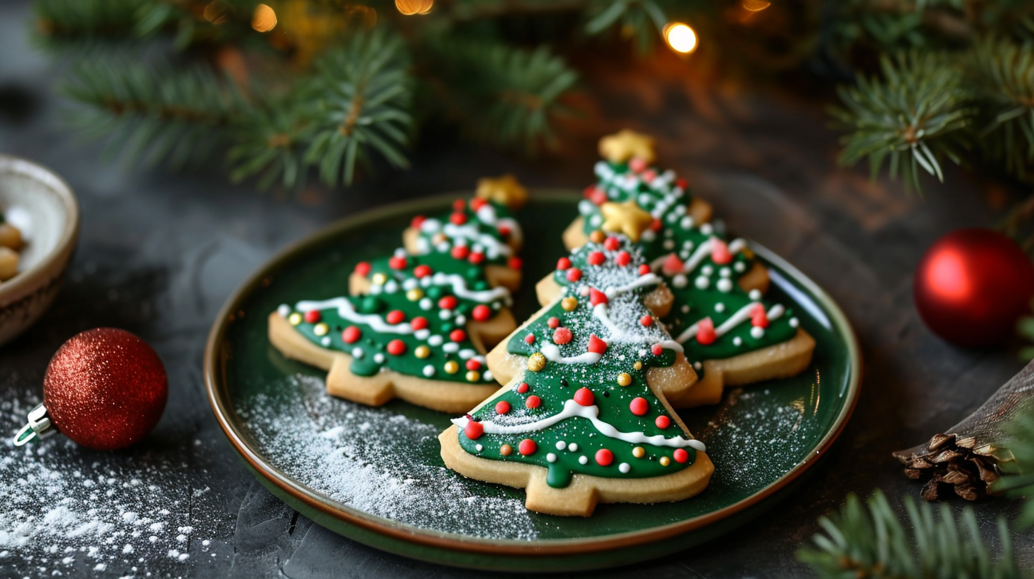 Пригласите детей украсить елочки — можно перед подачей на праздничный стол посыпать десерт сахарной пудрой либо разнообразной кондитерской посыпкой.