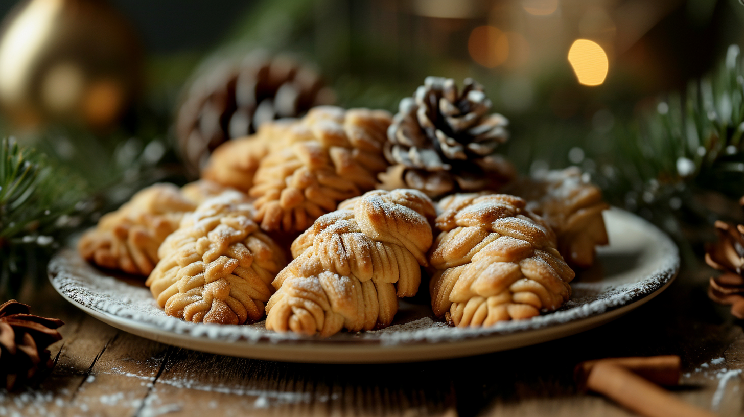 Перед подачей на праздничный стол украсьте шишки сахарной пудрой или шоколадной крошкой, посыпьте измельченными орешками.