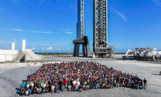 США, штат Техас. Сотрудники космической компании SpaceX сделали фото на память возле стартовой площадки сверхтяжелой ракеты-носителя Starship в преддверии второй попытки испытательного орбитального запуска.
