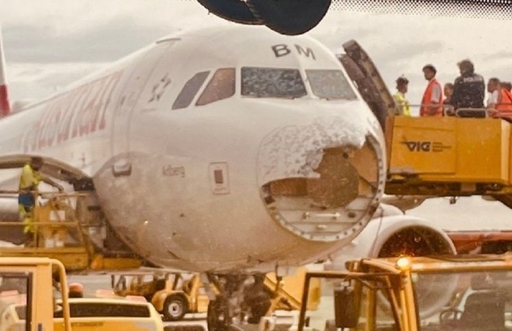 ▪️ Летевший из Пальма-де-Мальорка пассажирский лайнер Airbus A320 попал под сильный град на подлете к австрийской Вене. Воздушное судно получило сильные повреждения. Как сообщает Kronen Zeitung, у самолета выбит иллюминатор кабины, носовая часть практически полностью разрушена. По словам летевших сквозь грозовой фронт пассажиров авиалайнера, они ощущали тряску, а само приземление «прошло немного более бурно, чем обычно». Только выйдя из самолета и посмотрев на воздушное судно, пассажиры поняли, насколько были близки к авиакатастрофе. Пострадавших в результате инцидента не было.