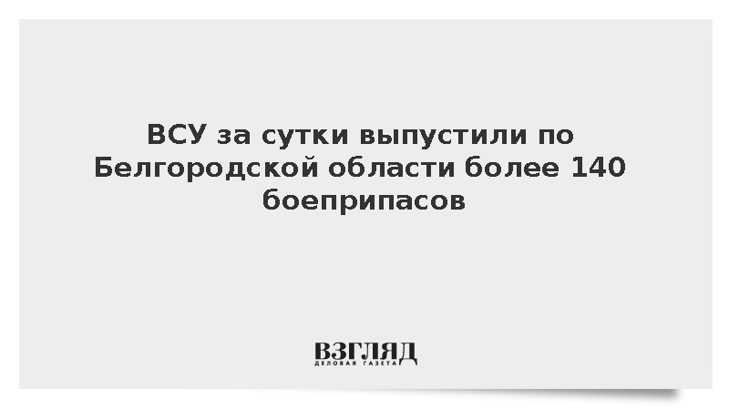 За сутки по Белгородской области ВСУ применили более 140 боеприпасов и порядка 40 беспилотных летательных аппаратов, сообщил губернатор региона Вячеслав Гладков.