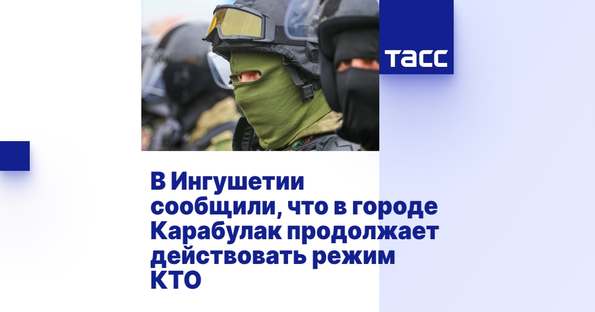 МАГАС, 3 марта. /ТАСС/. Режим контртеррористической операции (КТО) продолжает действовать на территории города Карабулак в Республике Ингушетия, сообщили ТАСС в оперативных службах региона.