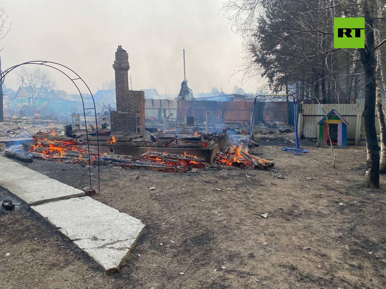 На фото от подписчика RT — масштабы лесных пожаров и последствия в СНТ «Автозаводец» и «Озон».