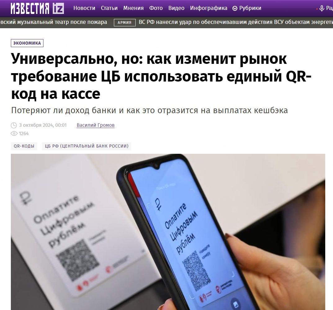 В частности, они говорят о том, что защита единого QR-кода НСПК от рыночной конкуренции приведет к монополизации рынка платежей, заморозке развития этого вида расчетов, а также снижению комиссионных доходов коммерческих банков, что, в свою очередь, негативно скажется на выплате кешбэка, который привыкли получать клиенты. Набиуллина же сообщает, что единый QR-код сделают обязательным к моменту внедрения цифрового рубля ― с июля 2025. @banksta