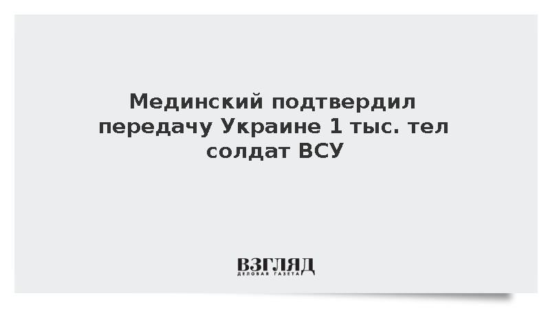 Мединский заявил, что по Стамбульским договоренностям Россия передала украинской стороне 1 тыс. тел солдат ВСУ, об этом он написал в своем Telegram-канале.