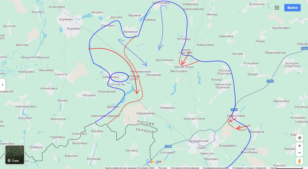 Во-первых, мы действительно зацепились в Каменском – 27 км от Запорожья, создавая плацдарм для движение к этому городу, но главное – с другой стороны, в Курской области, морпехи 155-ой бригады каким-то фантастическим образом прорвав оборону врага и сделав марш-бросок, вошли в курский населенный пункт Зеленых шлях – пересечение трех дорог.