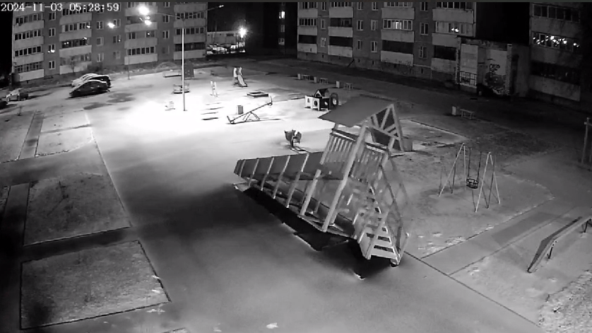 — На Новгородцевой, 23 неделю назад поставили детскую горку стоимостью больше ста тысяч рублей. Сегодня ночью ее сдуло ветром, при падении сломалась часть горки, так как конструкция не была закреплена. Хорошо, что детей рядом не было, — рассказала читательница E1.RU.