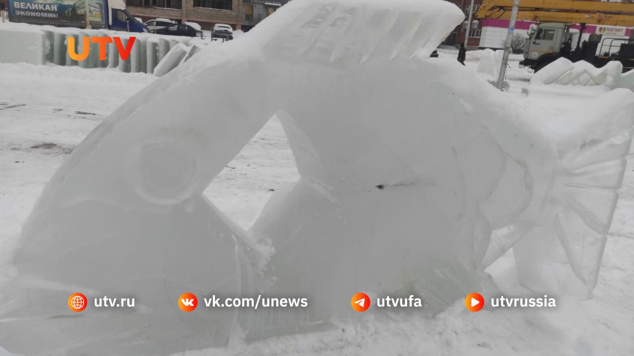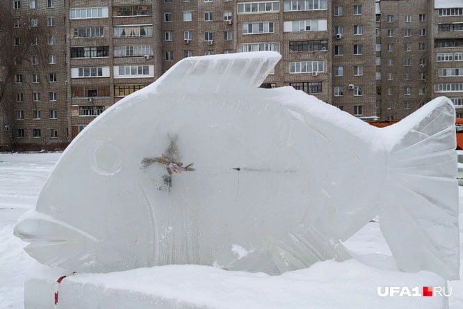 🐟 В Уфе изо льда создали фигуру рыбы, внутри которой оказались две замерзшие рыбы