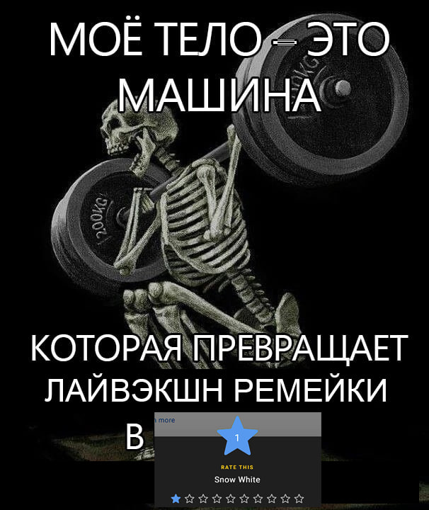 Белоснежка и семь миллиардов хейтеров. «Белоснежку» заревьюбомбили на IMDB — её рейтинг сейчас 1.5 из 10. Это один из самых низкооцененных фильмов на сервисе. На данный момент лишь у 4 фильмов оценка ниже.