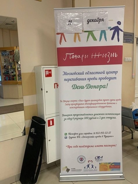 В этот день в Пущино прибыла выездная медицинская бригада Московского областного центра переливания крови, которая приняла всех желающих стать донорами и помочь детям и взрослым, находящимся в трудной ситуации.