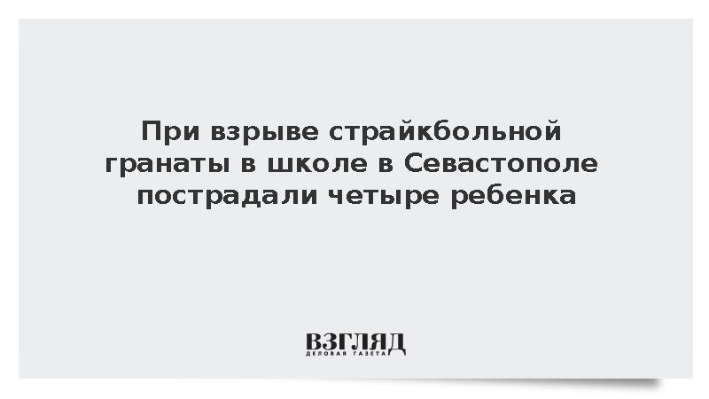В одной из школ Севастополя во время занятия в актовом зале сдетонировала страйкбольная граната, в результате чего пострадали четверо детей, сообщили в УМВД по Севастополю.