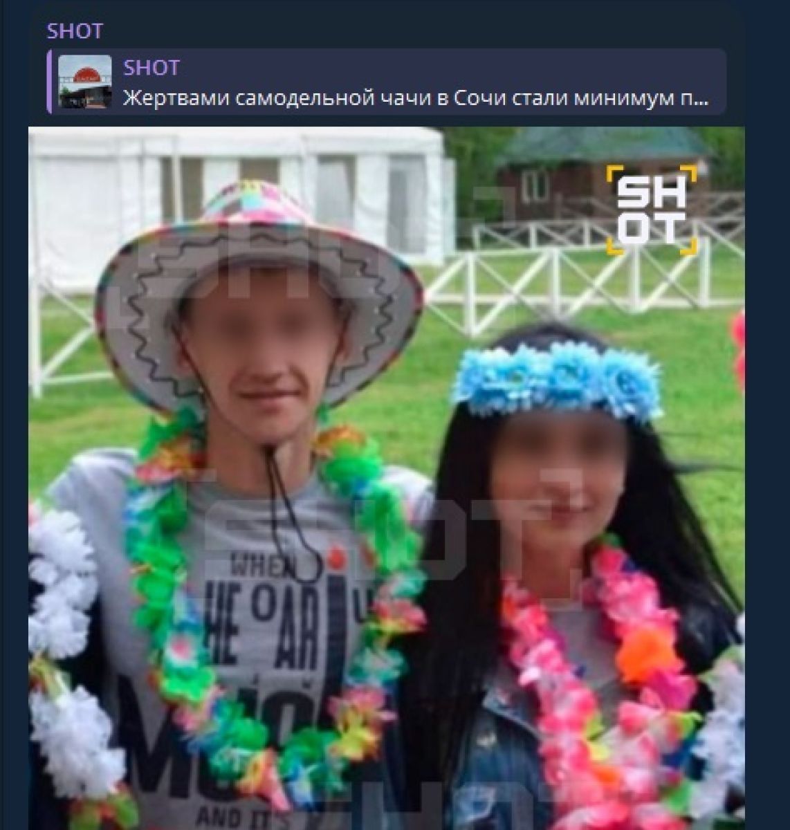 Краснодарские СМИ рассказали о ещё одной трагедии, произошедшей с семьёй из Подмосковья. В гости к жителю Сочи Всеволоду приехали родственники — 69-летняя бабушка и 42-летний брат его матери с женой. Купили на том же рынке бутылку чачи на шелковице и дыне и отправились на шашлыки. Сам сочинец на пикник не поехал, а вот его 57-летняя мама составила компанию родным. В итоге на следующий день всем четверым стало очень плохо, они не могли говорить и теряли сознание. В начале августа скончались три члена семьи — и мать, и бабушка, и брат матери. Спасти удалось только его жену. По словам сочинца, врачи сказали, что причиной стало сильнейшее отравление метанолом, который якобы обнаружили в крови.