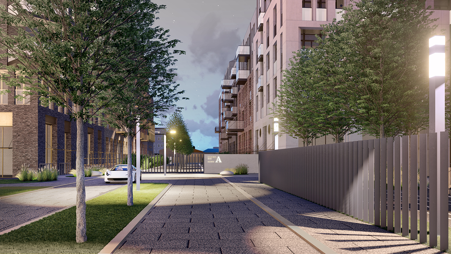 В малоэтажных жилых комплексах создается пейзажный ландшафт с мягкими очертаниями, асимметрично расположенными элементами и выраженным рельефом. Если дома выше 12 этажей, а двор шире 45 м, высаживается «регулярный сад», где преобладает симметрия, а группы растений располагают на одинаковом расстоянии друг от друга.