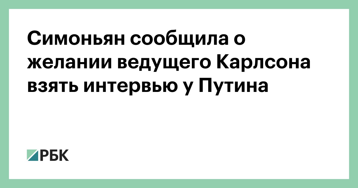 «Он (Карлсон. — Прим. ред.), кстати, очень просит интервью с Владимиром Путиным. Если бы вдруг кто-то услышал и донес до президента, было бы здорово», — сказала она в эфире телеканала «Россия 1».
