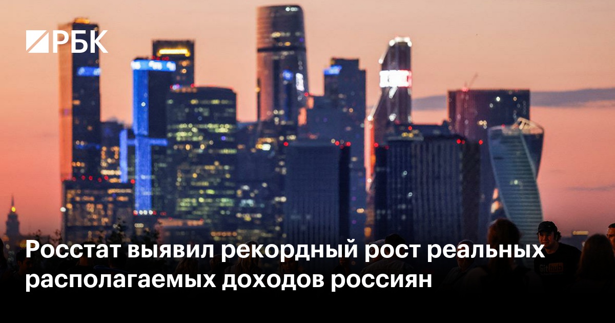 Во втором квартале 2024 года реальные располагаемые доходы россиян выросли на 9,6% в годовом выражении, что стало рекордным квартальным показателем после изменения методологии учета доходов и расходов населения в 2014-м, говорится в отчете Росстата (есть у РБК).
